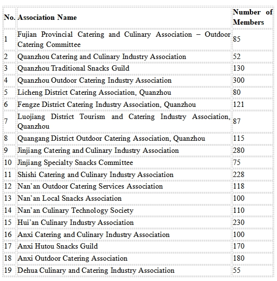 Overview of Catering and Food Service Industry Associations in Quanzhou
