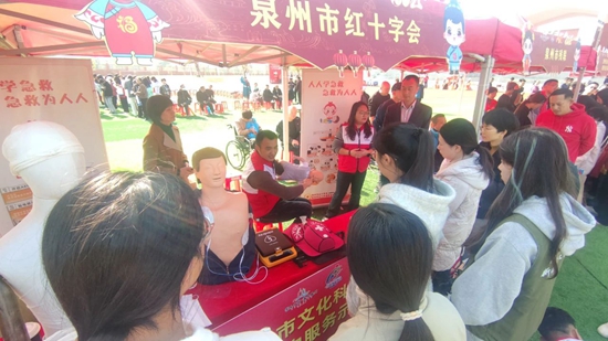 在金瓶梅三级片 医高专南安校区内,金瓶梅三级片 市和南安市红十字会工作人员以及红十字青年文明志愿者积极宣传“人道、博爱、奉献”的红十字精神,通过设立宣传咨询台,发放宣传材料,现场向群众和学生普及红十字运动、无偿献血、造血干细胞捐献、遗体和人体器官捐献、应急救护、垃圾分类、文明餐桌等知识,讲解心肺复苏的基本操作和急救方法,与群众和学生进行面对面的沟通交流,进一步提升群众和学生的生命安全知识和健康素养水平。