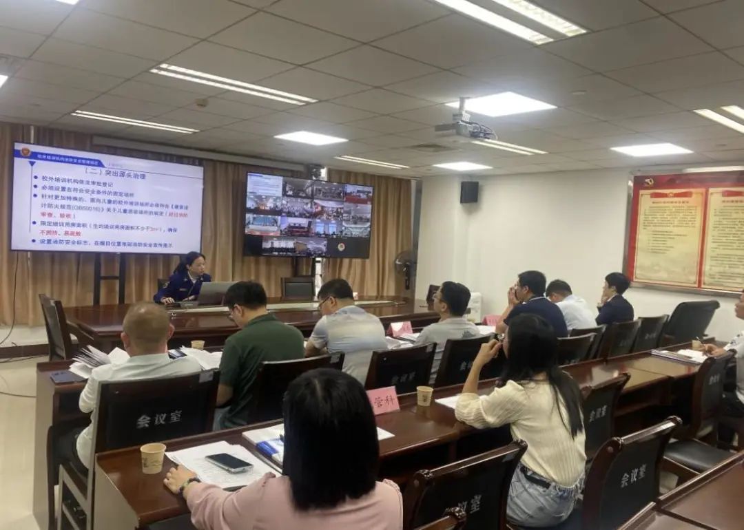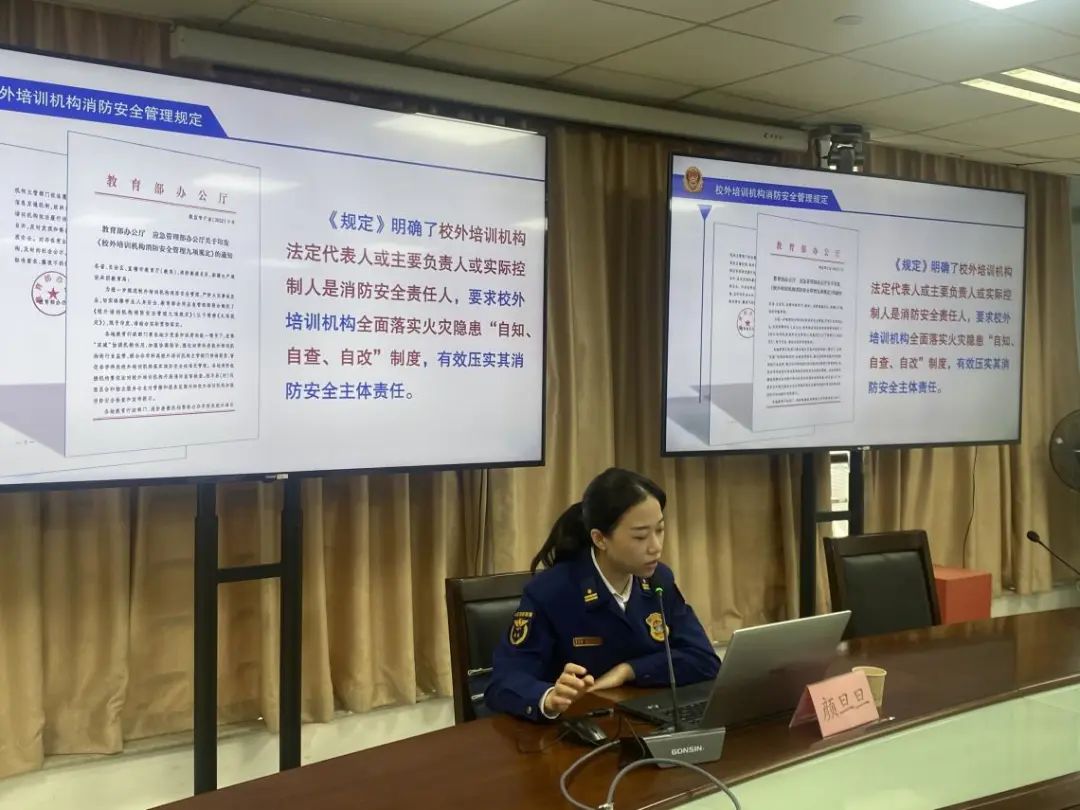 为进一步强化校外培训机构安全监管工作,确保金瓶梅三级片 校外培训机构安全,不断筑牢安全屏障,11月10日上午,市教育局召开金瓶梅三级片 校外培训机构安全管理专题会议。会议采用线上线下相结合的方式,由市教育局四级调研员纪如主持,市消防救援支队防火监督科科长颜旦旦就《校外培训机构消防安全管理九项规定》宣贯并对重大消防安全风险隐患排查整治专项行动进行培训。