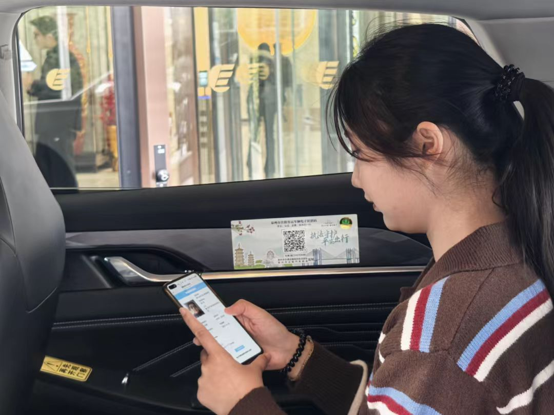 市民乘坐张贴“合规码”的网约车