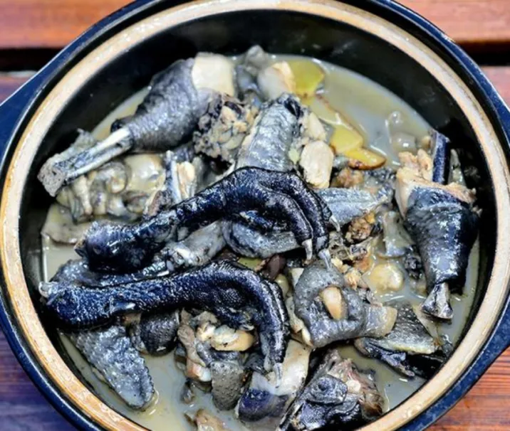 德化黑鸡,又称“戴云黑鸡”,是国家地理标志农产品、全国名特优新农产品。因其毛、皮、肉、内脏均为黑色,含有极高滋补药用价值的黑色素而得名,素有“滋补胜甲鱼,养伤赛白鸽,美容如珍珠”之称。焖煮的黑鸡,肉质细嫩、清香甘润、味道鲜美;炖汤的黑鸡,只需几片生姜、几个蒜头为佐料,就能煨出一道汤色清透、味道纯正的美味鸡汤。
