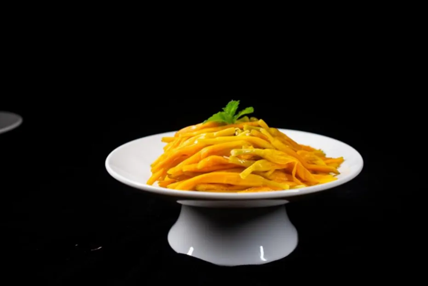 选用德化县春美乡优质黄花菜干品,汆水至熟后捞出,加入萝卜姜蒜和油盐调拌而成。凉拌黄花菜清香爽口、营养丰富,具有清热利尿、消肿解毒、止血养血、平肝舒气等功效。
