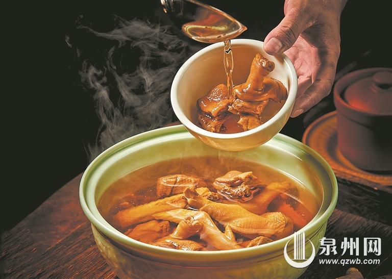 东田溢鸭汤是一道富有闽南传统特色的“古早味”滋补汤,相传是古代女子所喜爱的养颜秘方。加入虫草等中药材的溢鸭汤具有补肾益精、调节肝功能、补气补血、滋阴养颜等多种功效。