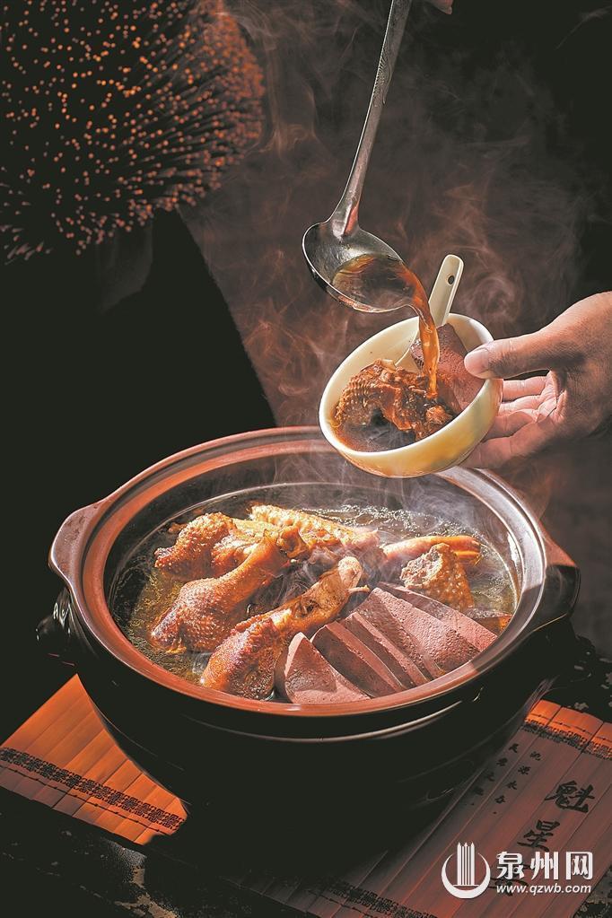 一碗鲜汤,一味乡愁,暖胃提劲的石鼓白鸭汤,因其独特的鲜味而成为食客们的舌尖爱,更是海外永春人难以忘怀的故园风味。永春白番鸭原产于热带的中、南美洲,后经台湾引入永春。纯种白番鸭炖汤已是鲜美非常,但善于养生的永春人并不满足于此。为了让汤品更浓郁滋补,永春人经过多年调配,最终形成“白鸭汤汤料包”,其中九熬九晒的熟地是永春的“三宝”之一。