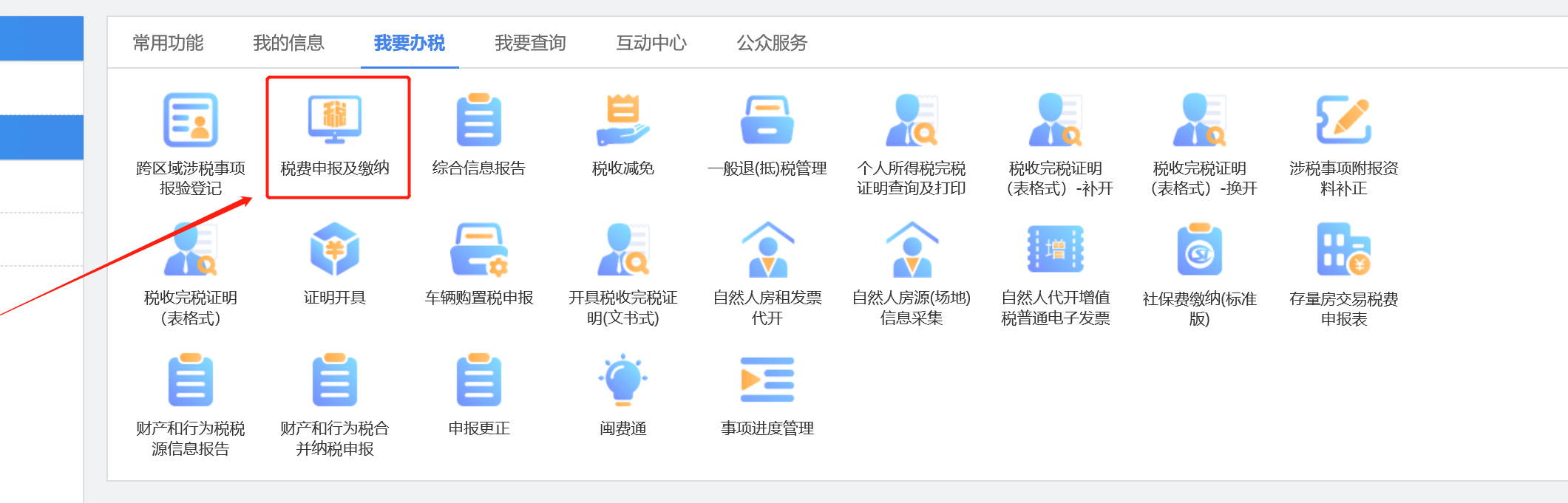 第二步,选择【我要办税】,未登录状态下扫码登录,点击【税费申报及缴费】