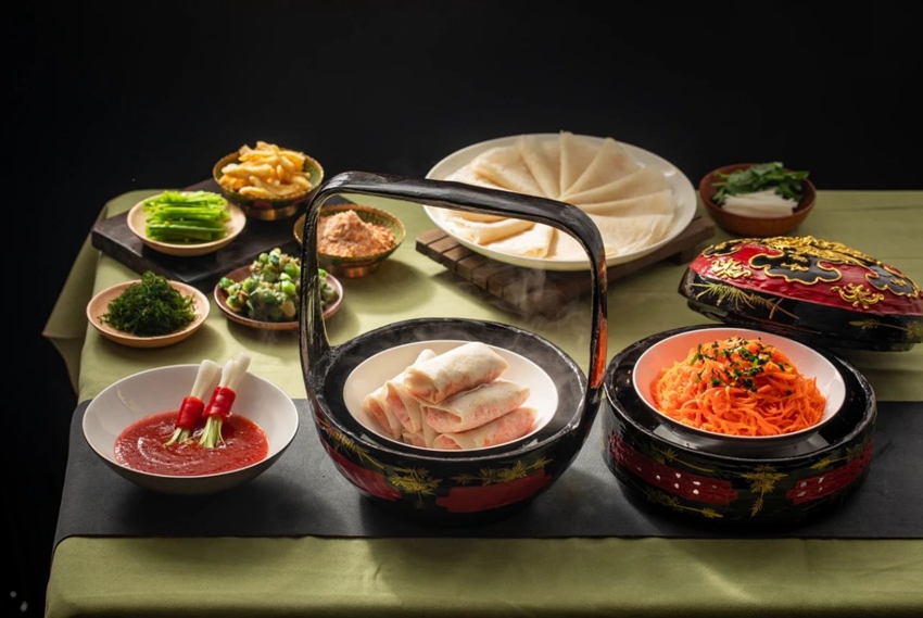 润饼菜的外形圆润饱满,象征着一家团团圆圆,和谐美满。那薄薄的白皮,柔软而有韧性,轻轻一咬就能感受到它的细腻。而红艳的馅料则是丰富的象征,包含着家人的祝福和期盼。这种白皮红馅的组合,也被赋予了“包金包银”的美好寓意,象征着财源广进,家庭兴旺。如今,润饼菜已经不仅仅局限于闽南地区,而是走向了更广阔的舞台。许多餐馆纷纷将其作为招牌菜,吸引了无数食客的味蕾。无论是繁华的街边小摊,还是高端的餐厅,都能见到润饼菜的影子。人们品尝之后,无不为其美味所折服,留下深刻的印象。在品尝润饼菜的过程中,人们仿佛穿越时空隧道,回到儿时的记忆中。那些与家人围坐在一起的时光,成为每个人心中最珍贵的财富。而润饼菜正是连接过去与现在的桥梁,让人们在品味中找寻那份对家的眷恋和思念。