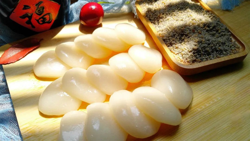 在南安英都,过年少不了的一道小吃是寓意吉祥富贵的英都麻糍。为何说它吉祥富贵呢?传说清朝康熙年间,英都麻糍是当时王公贵族的“抢手货”。这道小吃到现在一直沿用着传统手工制作,工艺繁琐,吃起来滑嫩爽口,令人回味无穷。