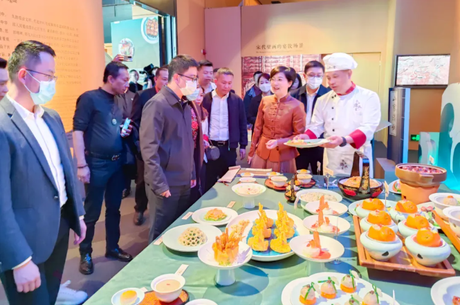 早在2022年初,石狮就启动了“宋元海丝宴”的复原计划。此后,石狮打出了一系列组合拳:推动开展《山家清供》学术研讨,探究石狮美食传承和创新的文化基因;举行“宋元海丝宴”暨闽南菜传承创意大赛;将“宋元海丝宴”一路送进全国地标美食名宴清单;2023年2月,“宋元海丝宴”进入中国国家博物馆展出,成为闽菜第一个进入“国博”的主题文化宴……