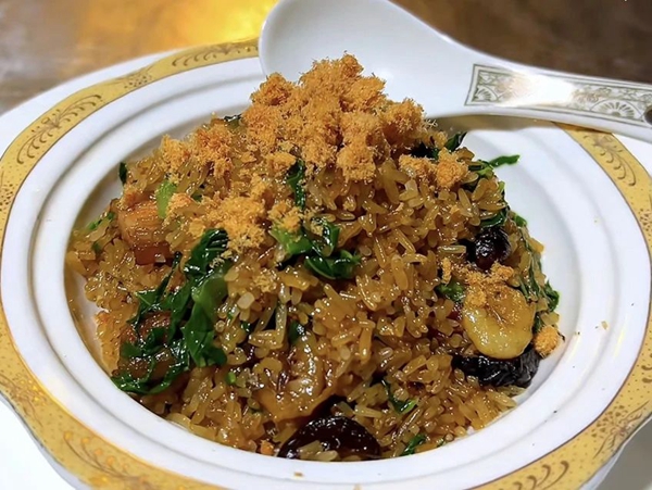 翠绿芥菜,如碧玉般镶嵌于金黄饭粒之中,每一粒米饭都吸饱了芥菜的清香与八宝干货食材的丰盈,如同春日里的翠玉,镶嵌着点点金光,让人在品尝间,仿佛置身于春意盎然的田园之中。