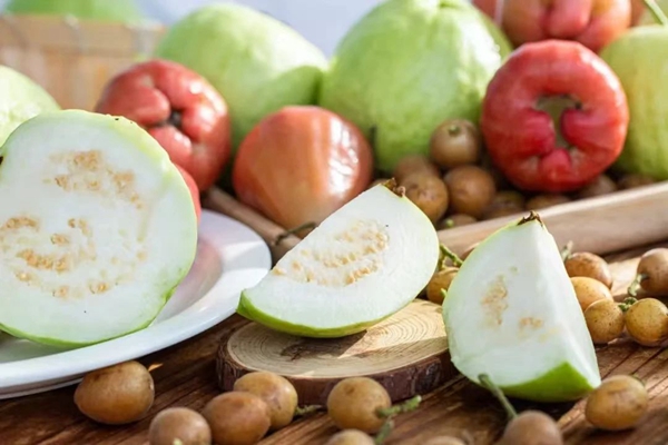 东田盛宴的特色水果,果实多样,有绿有红,切开的芭乐露出白嫩果肉,清新诱人。咬一口,果香四溢,口感爽脆,为您带来味蕾的甜蜜盛宴。搭配龙眼等,色彩丰富,口感清甜,为家宴增添一抹果香。