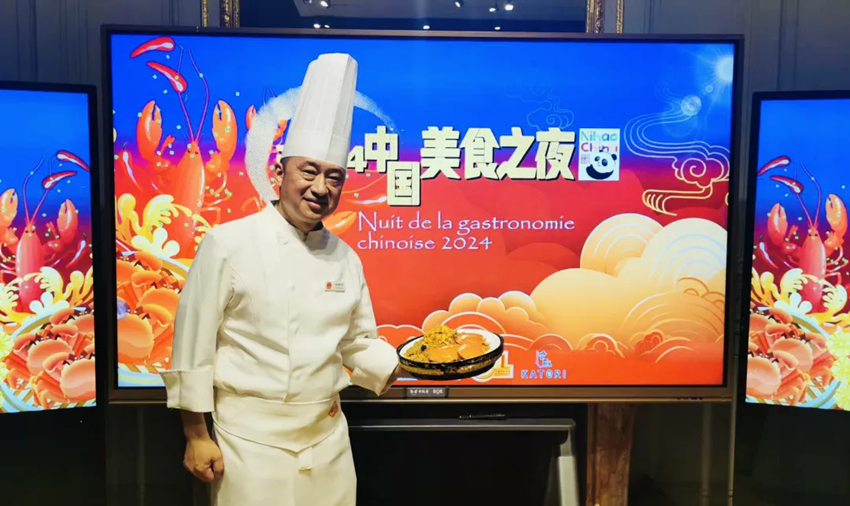 2024年4月,刘树文在联合国教科文组织总部的“中国美食之夜”,展示自己亲手制作的“蟳埔红鲟饭”